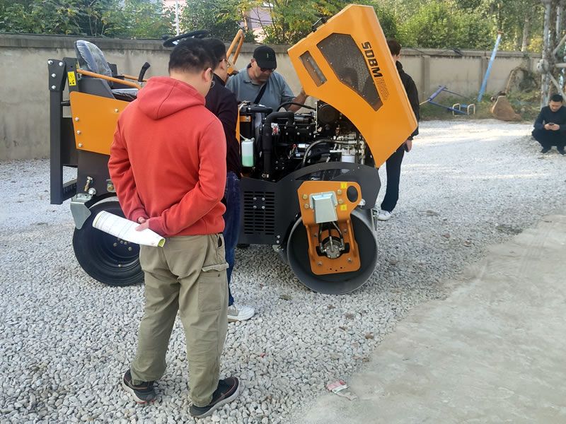 國外客戶來我公司考察試駕小型壓路機