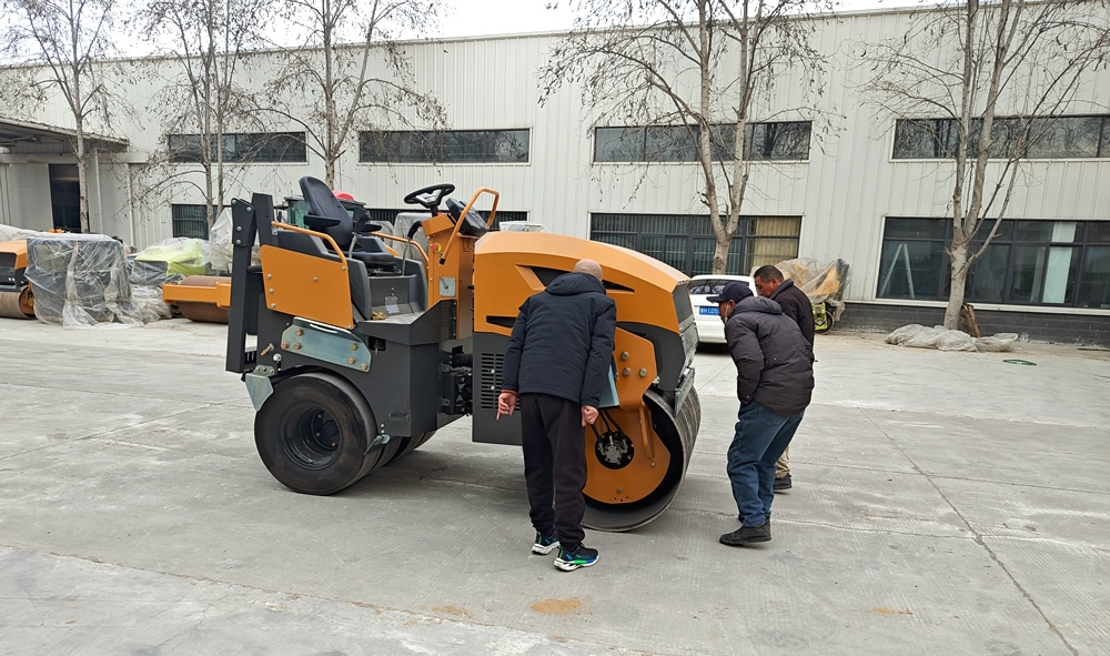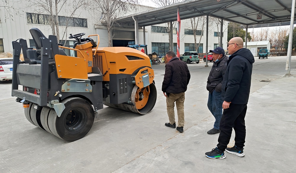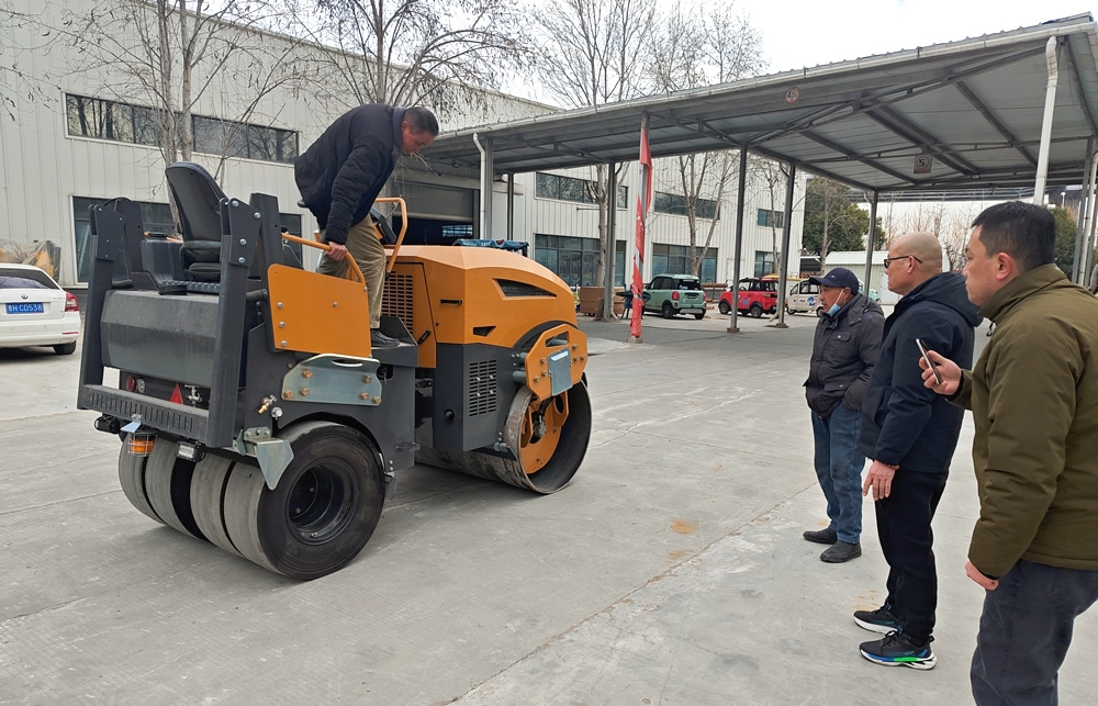 2月6日客戶來我廠參觀試駕5噸前鋼后膠壓路機