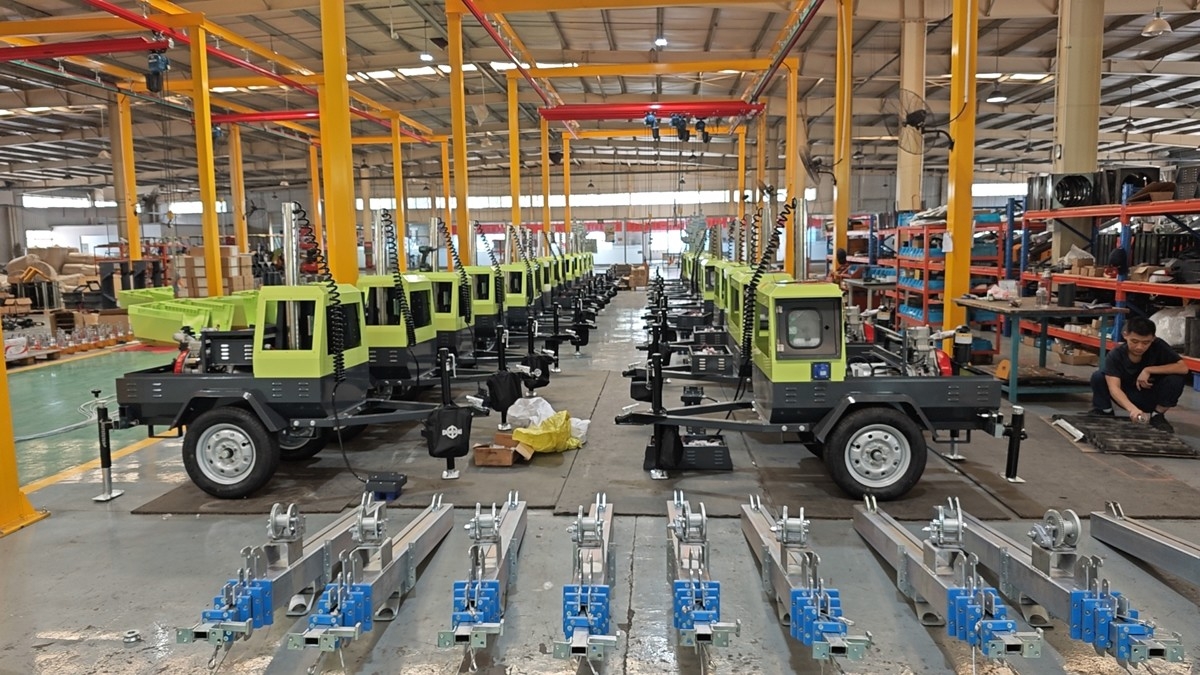 某國外客戶經(jīng)過考察對比,先購買我廠3臺移動照明車進行試用,試用效果十分滿意,經(jīng)過評估又繼續(xù)追加27臺,以下為生產(chǎn)裝配現(xiàn)場